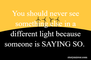 You should never see something else in a different light because someone is SAYING SO.