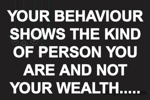 YOUR BEHAVIOUR SHOWS THE KIND OF PERSON YOU ARE AND NOT YOUR WEALTH.....