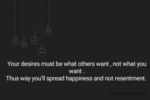 Your desires must be what others want , not what you want . Thus way you'll spread happiness and not resentment.