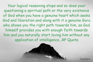 Your logical reasoning stops and so does your questioning a spiritual path or the very existence of God when you have a genuine heart which seeks God and liberation and along with it a genuine Guru who shows you the right path towards him, as God himself provides you with enough faith towards him and you naturally start loving him without any application of intelligence...RP Quote