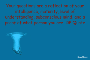 Your questions are a reflection of your intelligence, maturity, level of understanding, subconscious mind, and a proof of what person you are...RP Quote