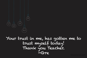 Your trust in me, has gotten me to trust myself today! Thank you Teacher. -Gre