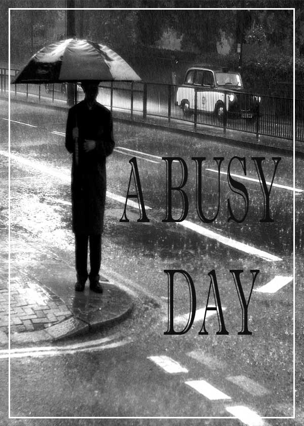 Once, in a small city named Bhodpur, there lived a man named Ramesh but widely known as Ram. Ram was a very hard working and punctual man who was not a minute late to work, but one day was special, not in a good way, when he was late. It was a rainy day and Ram could not find his umbrella. "AH" he exclaimed "THERE IT IS"! He glanced at his watch and saw that there were 15 minutes left. He stopped a taxi and got on it. As he rummaged in his pocket for his phone he found that he had forgotten his wallet but he remembered keeping the wallet in his upper pocket he considered calling the police as the police station was far away. After 15 minutes he sat near the riverside with a glum expression on his face.
