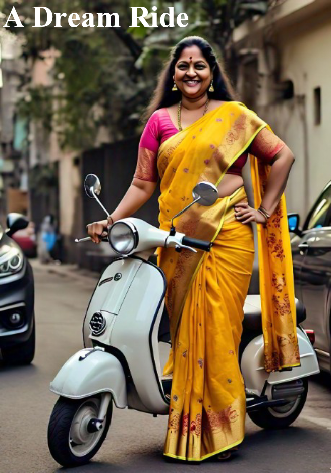 It was so embarrassing for me to hold a lady I hardly knew around her waist sitting behind her in a pillion in the busy street. But what could I do ? She had started the scooter. So I had to hold on to something to keep my balance. So, I had to wrap my arms around her waist. It was big but solid. Since she was wearing a saree, her stomach and back were bare. So my hand was touching her cold skin. It was so soft and smooth, it sent shivers of excitement down my veins. Her hair was loose under her helmet. It fell all over my face. Her hair and body had an enchanting fragrance, possibly from the perfume she was wearing mixed with her sweat. The roads were empty, she was driving fast. Was it on purpose? I had to hold on to her tightly to keep my balance. My face was coming right behind her head, so I had to place my face over her left shoulder, to keep our helmets from clashing. Every time she applied the brakes my chest would press on to her big solid back. It made me all the more ecstatic.