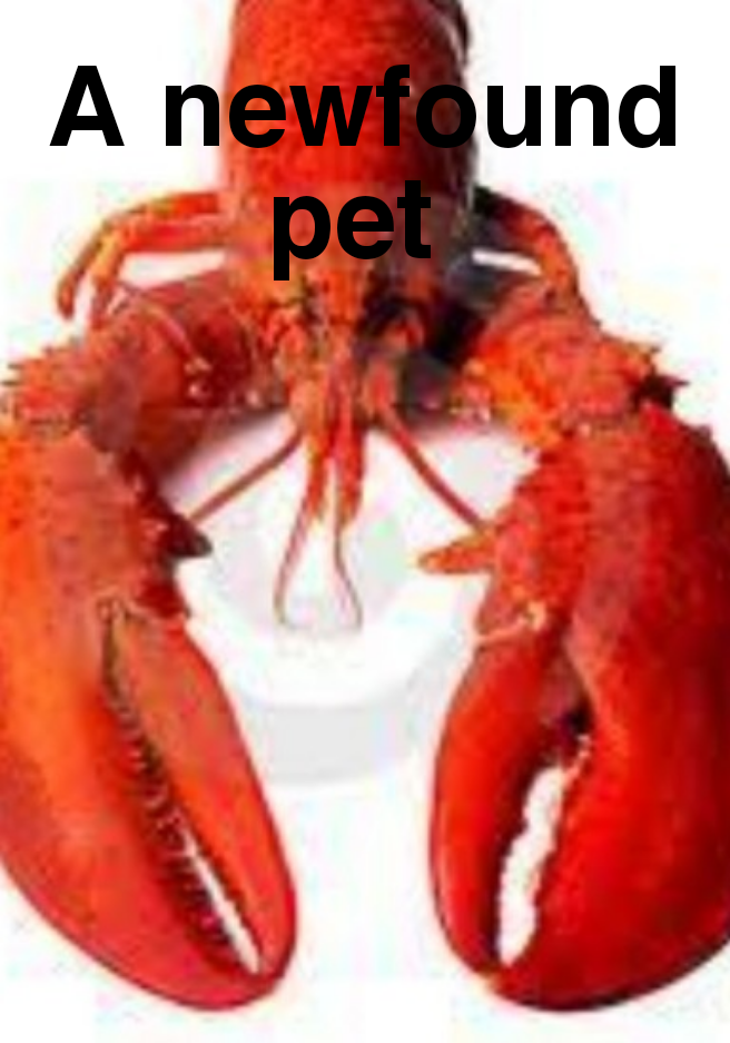 One day during lunchtime when I gave went to give him some worms, I saw that he wasn't moving. I touched him and a skinny layer of his shape but he wasn't there. I was shocked. I called my mom and asked her what had happened she said that the lobster had released his skin. We searched the whole house and found him in a bucket of water. I decided to write a journal about him every day in which I wrote what the lobster did every day. After a few months, we let him free in the pond and whenever I miss him I would read his journal and would think about my newfound pet.