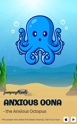 In a dark, deserted corner of the sea there lived an octopus, Anxious Oona. Oona was worried about everything. Her health, her job, her friends. The fact that she was worried, made her even more worried. It was an endless cycle.