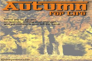 Autumn is the essence of life; it marks a vital variation. It is the chance, it is an option. It can be beautiful, it may be frightful; it can be inspiring and it can be melancholic. There are no pauses, no rewinds; nothing ever changes, and yet nothing is ever left the same. Change is the only constant, change is the only eternal. It is death, it is life; it is everything in between. So accept it, embrace it, live it; you are a part of it and you have a part to play.