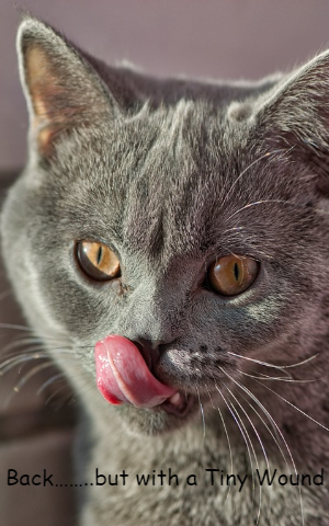 My human sister, Anu woke up and played with me for some time. I curled up in my cat bed and she went to the hall. Now, all I can tell you is that my ear roughly scraped a sharp corner. A tiny tuft of fur fell off along with a tiny bit of skin. This wasn’t a big deal at all. I went into the hall and brushed against Anu’s legs.
