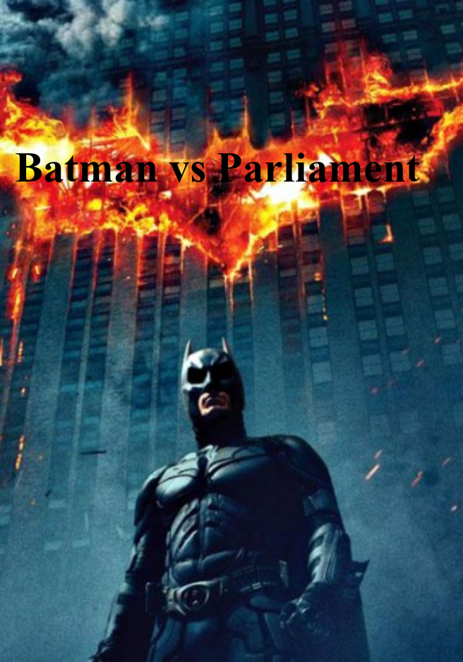 they decide Bruce Wayne is behind this and all unanimously decide the execution of Bruce Wayne and they all say unanimously "The Dark Knight of Gotham".