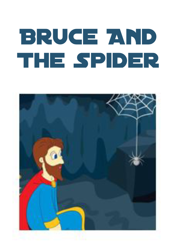 As he lay thinking, he saw a spider over his head, making ready to weave her web. He watched her as she toiled slowly and with great care. Six times she tried to throw her frail thread from one beam to another, and six times it fell short.