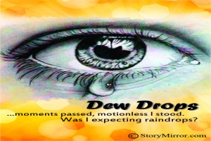 Two large rain drops resting on the leaves fell on the cover of the album. With great care I wiped away the water with the ends of my shirt. I resumed the posture of uplifted arms with the album. Moments passed. Motionless I stood there. Was I expecting rain drops?