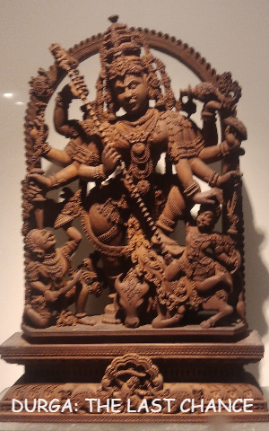 That night Shiva started his journey to the planet of Heaven on his spaceship. After reaching Heaven, Shiva discussed the matter with Brahma, Vishnu. They brainstormed a bit and found a solution. They identified the main problem of mankind. It was nothing but poverty that was hindering most of the people from accessing the resources created by Brahma. So they came to the conclusion that instead of annihilating mankind, one last chance could be given. So they came up with the idea to form Durga again with all the collective energy of the gods and goddesses to annihilate the daemon of poverty from mankind to establish a pure human society without inequality, illiteracy, pollution, homelessness, racism, hunger, poverty, inaccessibility to the resources, unavailability of health care, and borders. But Shiva said that this was the last chance for mankind to exist on the blue planet. Durga must kill the daemon!