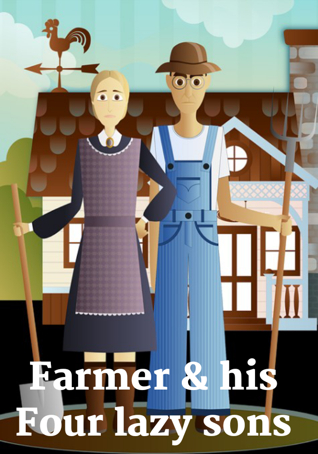 Once upon a time, there was a farmer his name was Ravi. He worked so hard in his fields. He got enough money for his job. He has four sons named Raju, Ram, Raman, Ramesh. The four slept all day long or spend their time in something else. The farmer was sad for his sons.