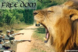 Before I could have helped it, I saw four men coming with fully loaded guns on their shoulders. I readily understood that they were the ones to shoot the bullet and now they are coming to get the lion. I very well understood their intentions. They were about to catch him and either kill him for skin or sell him in the city to a zoo or circus for money.