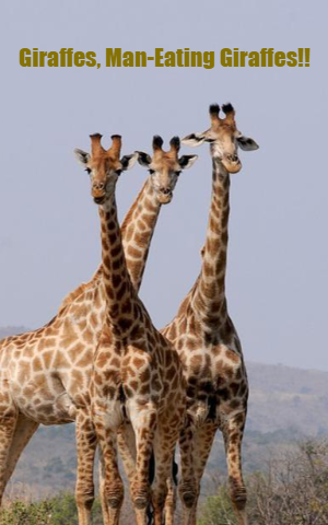 Lilou started ignoring the giraffes but when she saw one picking up a man and gobbling it down its long throat, she could not ignore them anymore. They were not giraffes; they were man-eating giraffes!!