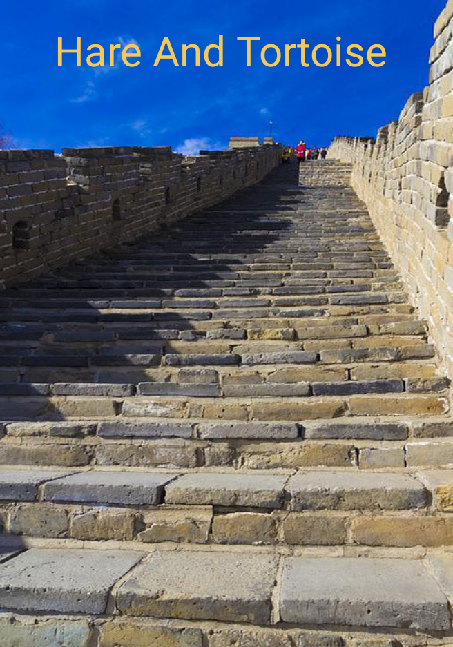 The times for stories So, the hare and the tortoise had a race. The hare ran very fast and very far. After a while, the hare turned back to see where the tortoise was. The tortoise was walking very slowly and it was far behind the hare. "The tortoise will take a very long time to come near me," the hare thought.
