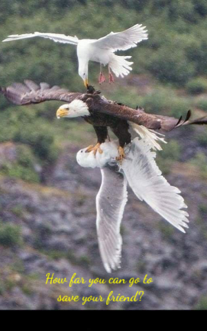 In the cover photo of this story, Seagull attempts to free its friend from the claws of an eagle in an epic mind-air battle.