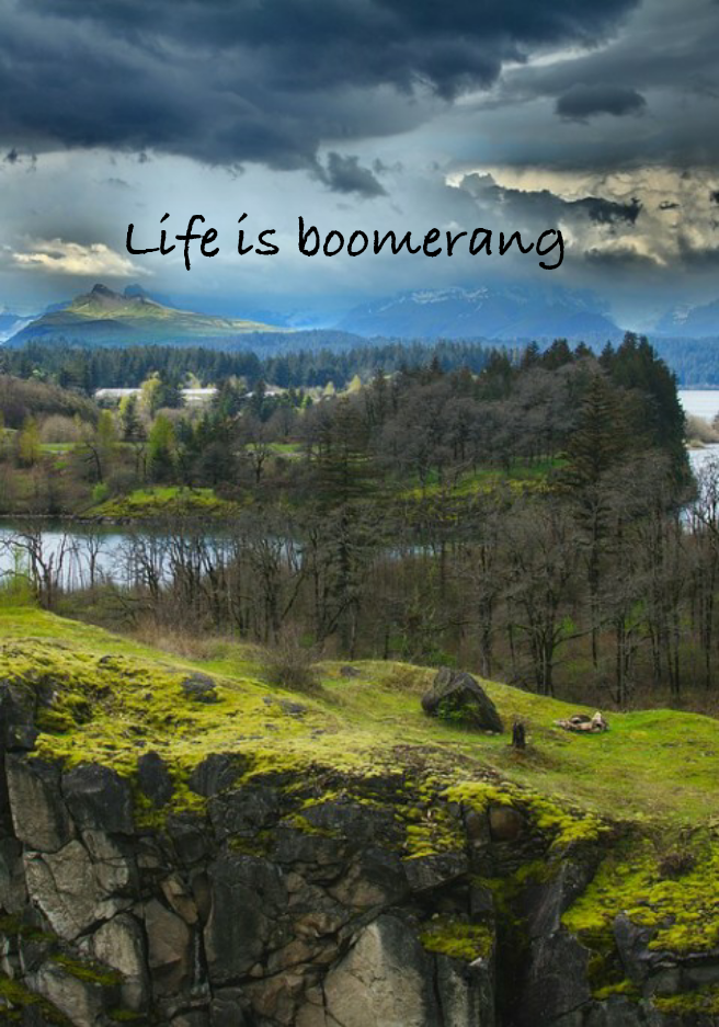 So when we throw a boomerang it comes back and we catch it similarly our life is the same as a boomerang.