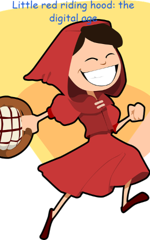 As she entered Granny’s small & cozy wooden cottage, she saw the back of a large woman in Granny’s frilly gown and a cap ‘Come in dear child, I am lying in bed because I have a bad cold.’ Just then the lady burped loudly ‘Just a bit of indigestion,’ she said in a strange croaky voice. Red understood something was fishy and said, ‘you are not your usual self, grannie’ The wolf, realizing Red had sensed the disguise, took off the cap and said menacingly ‘now, I will eat you young lady, just as I ate your dear grandmother.’ Red, a smart and brave girl, replied ‘Oh no you won’t,’ took out her cell phone started dialing 911. The wolf, realizing what she was doing, sprang towards her. She picked up the lamp next to her and hit the wolf squarely in the head, the beast collapsed. Thereafter She took a deep breath and told the operator to send the police and an ambulance fast.