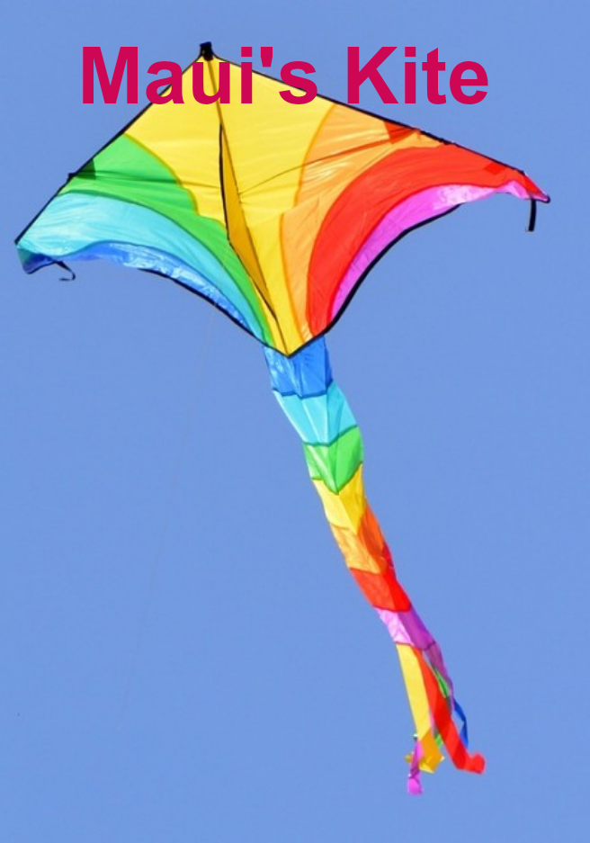 Long ago in ancient Hawaii people used to tell stories to explain and respect the power of nature. Once there lived a boy named Maui in a small village of Hawaii. During summer many of his friends went for a vacation he was getting bored at home as his parents were both busy with work. He decided to build a very huge kite that would fly high. His mother gave him a large piece of cloth , Maui cut bamboo for the sticks and teared the flesh of the branches of Alona tree for the rope he spent 2 hours to make his kite and after he finished he thought to himself that his kite was a work of art. He wanted a special wind to fly his "Special" Kite. He decided to go to the Keeper of Winds to get a special wind. On the way Many people helped him carry his kite and the people of the village stopped there work and went to see. The keeper of winds was an old woman he controlled all the winds and kept them in a gourd.