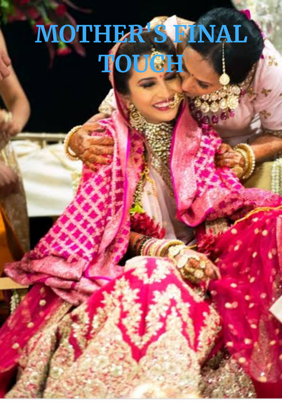 Shalini suddenly came back from her imagination and opened the door and embraced her mother and cried a lot and said, "Mom I would not leave you ! said to her mother crying restlessly. With her tear, Mohini's saree got wet and Mohini's eyes became wet as well. . She also couldn't stop her tear falling from her eyes. Meanwhile the sound of DJ, Dhol, music etc. came to Mohini's ear and then she said,wait I have something for You ; wait for a while, I am just coming my doll. Then she went to her bedroom and bring a box and opened Infront of Shalini and said, Shalini ! this is the traditional necklace. My mother had given it to me and I am now giving it to you. Shalini then requested Mohini to tie on her neck in her own hand. Shalini then tied the necklace on Shalini 's neck crying and said this is my final touch. Both then cried a lot embracing each other.