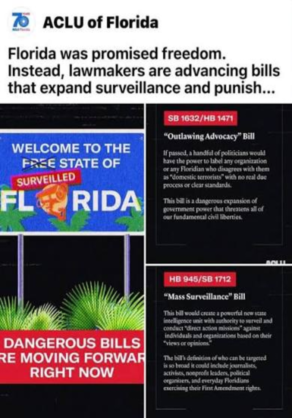 They get to pick who “they” think may be a domestic terrorist. There is a lack of oversight and critics, including the ACLU of Florida, argue the bill lacks judicial review and could be weaponized to target advocacy groups and silence political dissent.