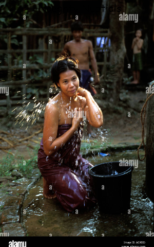 After his bath, having filled the well-side tub for her use, he retreated to the bed as agreed and waited in anticipation, but she started her bath with her clothes on. Crying foul, he rushed to the well and pulled at her sari, leaving her in her blouse and the petticoat. When his attack was directed at her midriff to untie the ribbon, she agreed to obey and sent him away.