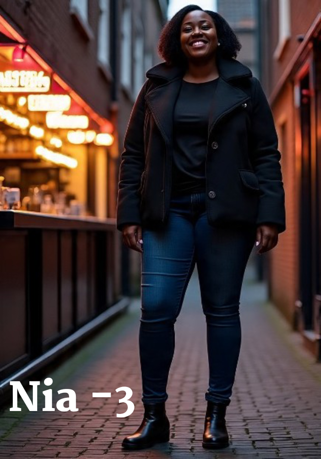 Beside her was Nia’s sister, just 19 but already 6 feet tall, 85 kilos, and glowing with youthful energy. Curves like her sister’s, but with a playful bounce. Her curls bounced as she ran up to Nia.