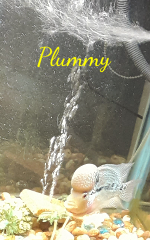 I have a very unique fish. She has a lump or plum on her head. Hence, I have named her "Plummy". I play with her all day & night. The moment she sees me, she swims toward me & begins to open her mouth because she feels I am going to feed her. Plummy is my only pet & I love her very much.