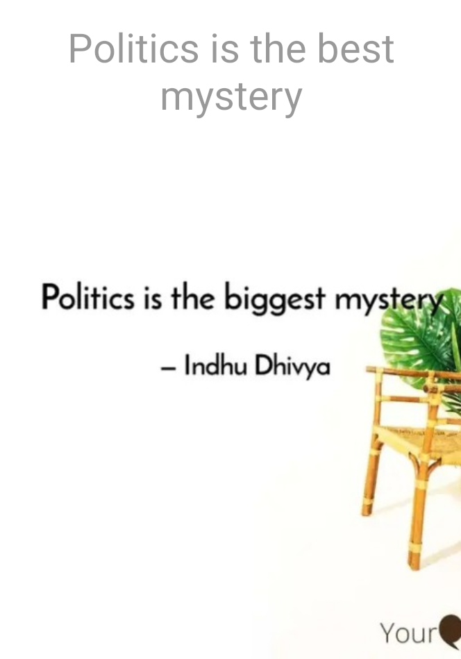 Our country is a democratic country, each citizen had rights to participate in election after completing 18 years of age...but now the politics turned into business. Our country falls down in our economic status and everything ...In my story we are going to the see the girl who shows her interest towards the politics...