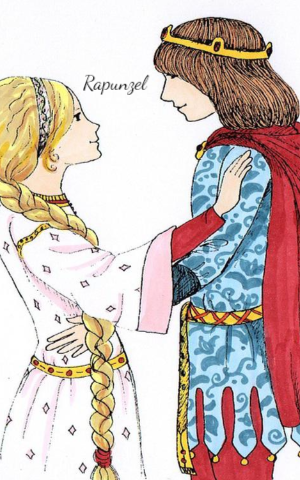One day, when Rapunzel was singing to pass the time, she happened to catch the attention of a young prince, who was so enchanted by her voice that he learned the secret of how to get to her. While Rapunzel was startled by him at first, they soon fell in love. It so happened that Rapunzel accidentally told the witch, “My, you are much heavier than my prince!” after which the witch, infuriated, chopped off her hair and threw her out into the wilderness. The prince was blinded by thorns and roamed the land, lamenting his beloved Rapunzel.