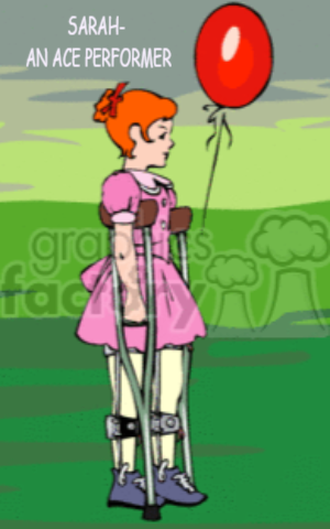 Its 4th February 2002, that’s when little Sarah was born with a muscle missing in her foot. It’s been 10 years today but she still wears a brace all the time on her leg. Everyone used to tease her in school when it was a sports day. One beautiful spring day, she came home jumping up and down, shouting at the top of her voice telling her mom that she had competed in the “field day”- that’s where they have lots of races and other competitive events on the school grounds.