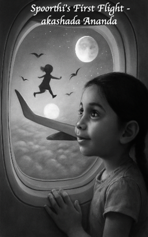 Takeoff was thunder and magic. Spoorthi gripped Thaatha’s hand, knuckles white. The airplane shuddered, wheels leapt off the ground, and her stomach plunged as if she’d tumbled down a well. For a moment, fear fluttered in her chest. But then—up, up, and through shimmering clouds!