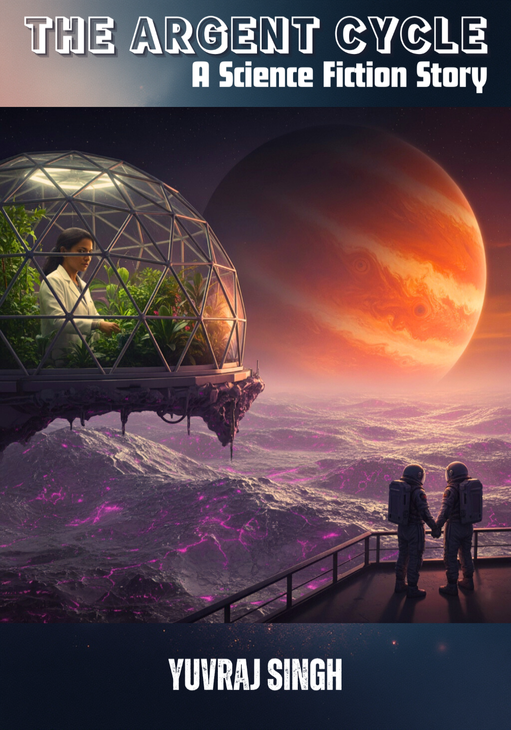 The sight outside was breathtaking. The Erebosian life, now peaceful, shimmered across the horizon, creating vast, rippling waves of argent light under the glow of Tychon, the great gas giant. It was a fusion of human Technology and alien life.