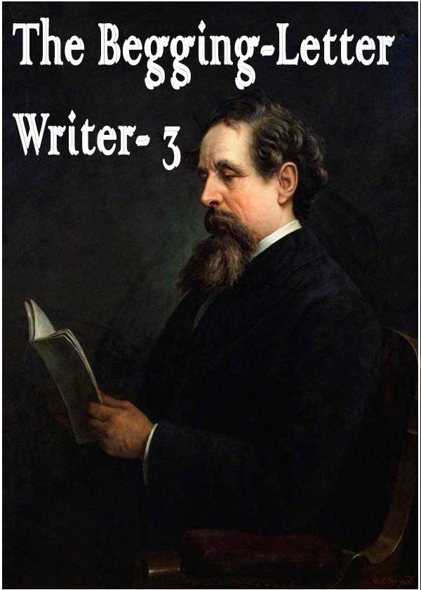 He always belongs to a Corresponding-Society of Begging-Letter Writers. Any one who will, may ascertain this fact. Give money to-day in recognition of a begging-letter, - no matter how unlike a common begging-letter, - and for the next fortnight you will have a rush of such communications. Steadily refuse to give; and the begging-letters become Angels' visits, until the Society is from some cause or other in a dull way of business, and may as well try you as anybody else. It is of little use inquiring into the Begging-Letter Writer's circumstances. He may be sometimes accidentally found out, as in the case already mentioned (though that was not the first inquiry made); but apparent misery is always a part of his trade, and real misery very often is, in the intervals of spring-lamb and early asparagus. It is naturally an incident of his dissipated and dishonest life.
