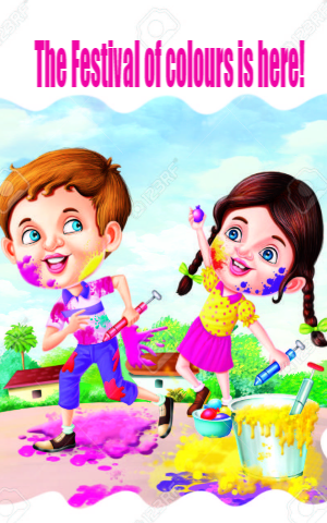 When he got dressed up, there was a knock at the door. With excitement, he opened the door to see if it was his friends Rahul, Deepak and Sohan with whom he will play, this Holi. To his surprise, it was a dad with Grandpa and Grandma. Dad had bought a new colour powder. Grandma and Grandpa had come for lunch. The doorbell rang again, and it was Rahul, Deepak and Sohan. “Hey guys ready to defeat the girls,” asked Krish. Just then Krish’s little sister Veena came and asked if she could join their team. Rahul suggested Veena be in Meenu, Shreya, Riya and Shruthi’s team, the girl’s team, The boys thought that Veena was very little to play the paint hide n seek.