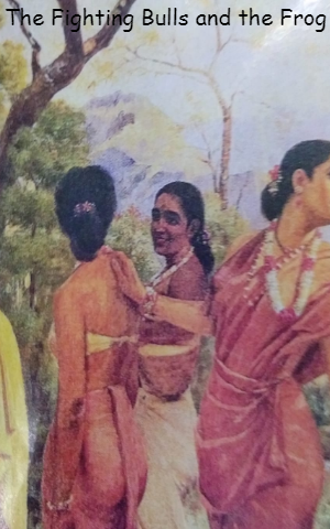 Two Bulls were fighting furiously in a field, at one side of which was a marsh. An old Frog living in the marsh, trembled as he watched the fierce battle.