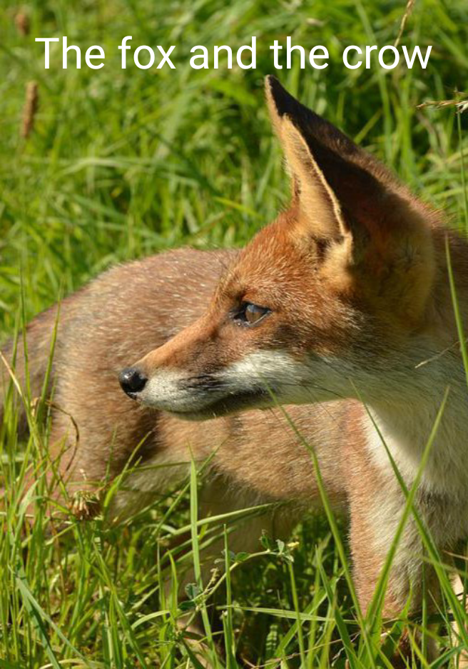 He had a piece of meat. A hungry fox cam there. His mouth watered when he saw the piece of meat. He thought of a plan to get it. He praised the voice of the crow. The fox said him to sing a song. When the crow opened his mouth to sing. The piece of meat fell down. The fox ate it and went away.