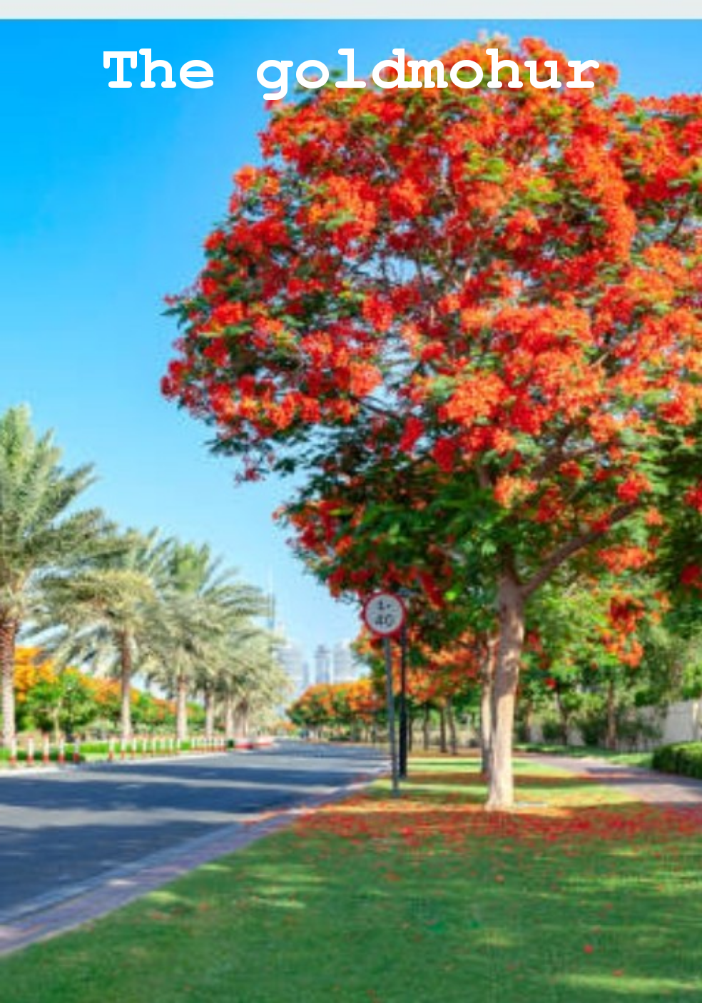Once upon a time, in a small village nestled between lush green hills, there stood a magnificent tree known as the Goldmohur. Its branches reached high into the sky, adorned with vibrant orange and red flowers that shimmered like precious gold in the sunlight.