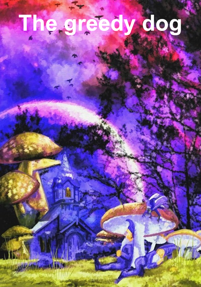 There was a dog that was very hungry.He searched for food everywhere and at least he found a boun.He picked the boun with his mouth and started going back to his home.There was a bridge on the way to his when he started crossing it he saw his reflection on the the dog thought that there was a another dog with a boun in he wanted to get that other boun too.So he started barking at his own reflection.His boun fell into the water as soon as he opened his mouth.The greedy dog lost his boun.