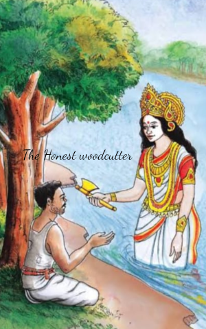 Once, there lived a woodcutter, Ramu, who lived a very simple life. He was poor but he was a good man and worked hard. One day while chopping down a branch, Ramu’s axe slipped and fell into the adjacent river. He tried searching for his axe but all in vain.