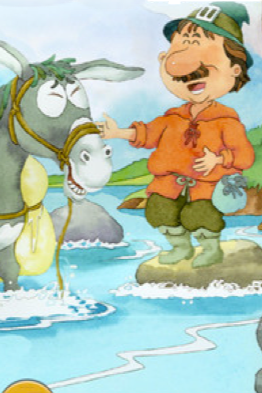 One day a beautiful spring morning, a merchant loaded his donkey with bags of salt to go to the market to sell it. The merchant and his donkey were walking along together. They had not walked far when they reached the river. As the river bank was very slippery the donkey slipped and fell into the river. The salt from the bags melted in the water. When the donkey got up, it noticed that the bags loaded on its back had become light. There was nothing the merchant could do, except to return home.