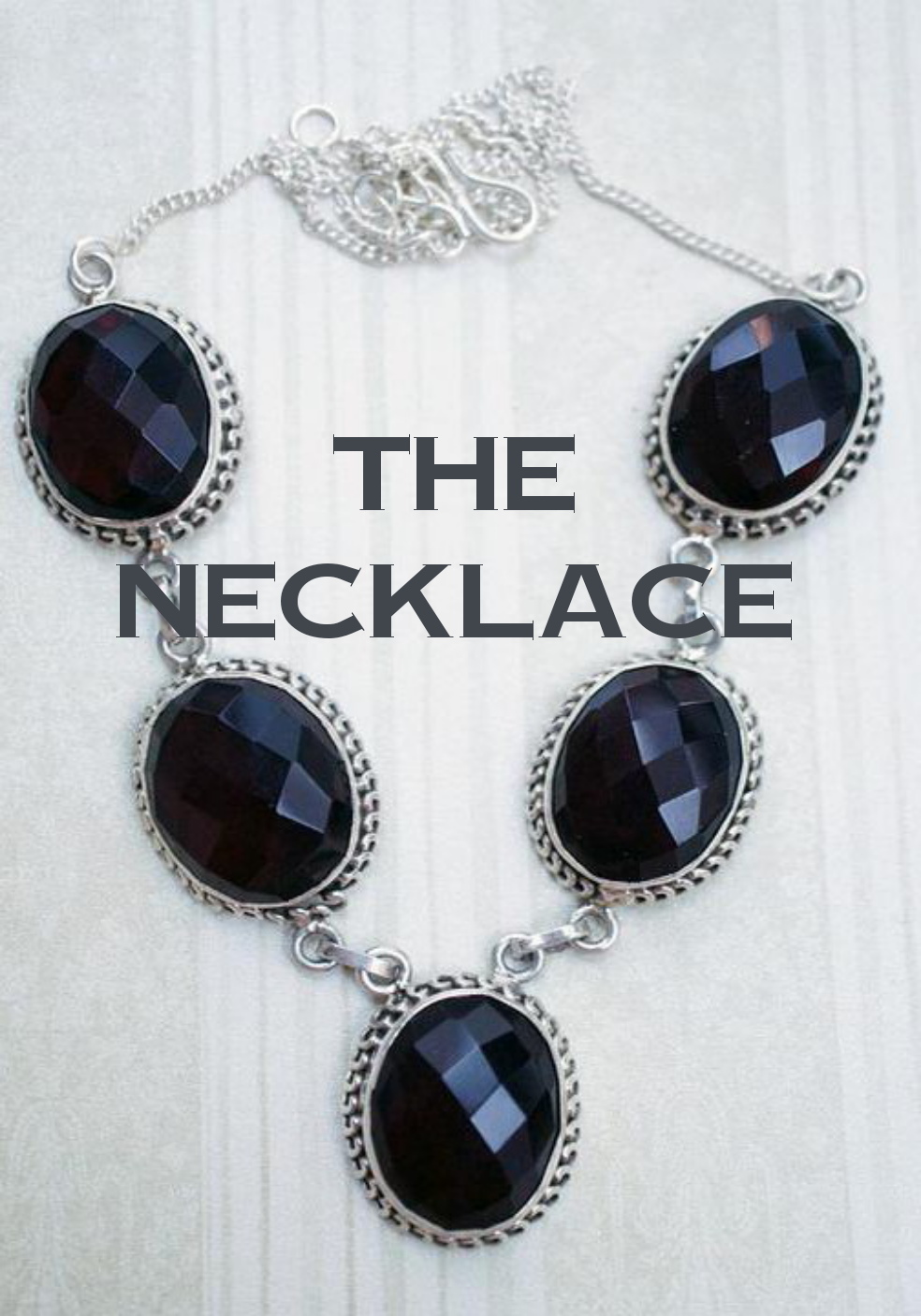 There was a beautiful necklace. I stood in front of a mirror and put it on my neck.