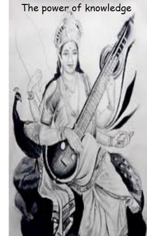 After few days they both came back to Swarga Lok and noticeably, Goddess Lakshmi was looking subdued, in spite of the heavy fine jewelry and fine clothes she was decked in. Saraswati, with a smile on her face, was playing veena, as usual. She stopped for a while and looked at Lakshmi and enquired as to what she saw on earth. Lakshmi replied to her,” We saw that people blessed with wealth loose it in no time if they do not have Saraswati’s blessings. They are cheated out of their wealth. Money earned with the support of educated, grows slowly but steadily but is lasting. Undisputedly, money or Lakshmi can be stolen but not Saraswati. Knowledge is most precious wealth which cannot be stolen by any thief. In fact, even if the person having knowledge is willing to share it, unless the recipient has your blessings, he cannot receive. So, Devi Saraswati you are more powerful of the two of us. Please excuse me for my ignorance.”