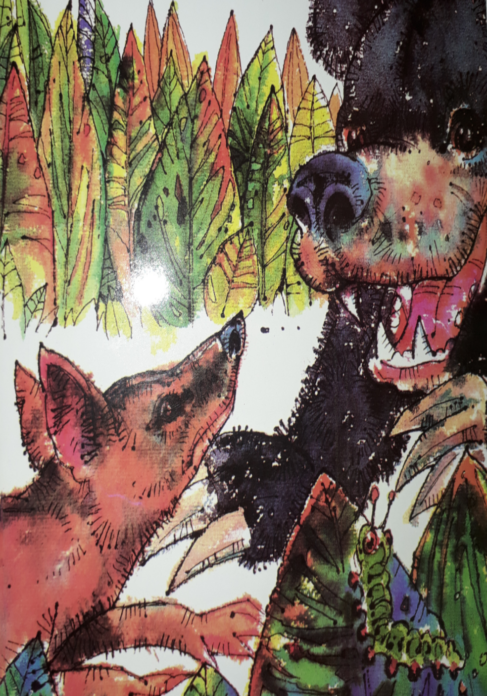 There was a jungle by the side of a village. A stray dog of the village gave birth to three pups in that jungle. One day on her way to hunt in the jungle she saw a baby wild dog abandoned under a tree. Taking pity she took the baby and reared him with her own pups. All four grew up together. They learned to hunt and live by themselves. One day the wild dog became greedy after seeing the three healthy young puppies. He told one of them, "Last night I saw a dream where I was eating you. So, to make my dream true I will eat you today." The young puppy replied, "You can if you want to make your dream true. But before that, you will have to ask three creatures whether dreams come true or not. If they say yes I myself will offer my head." The dog will agree. They first went to a goat. They asked, "Can a dream come true?" After thinking for a while, the goat replied, "Yes it can. " The wild dog was very happy. The next day, went to the riverbank to meet the heron. The wild dog asked the same question. The heron replied, "Sometimes yes, sometimes no." Finally, they went to a bear. The wild dog asked, "Please tell us whether a dream can be true or not."The bear listened to the story behind this question and then he thought to himself, 'This wild dog is greedy and ungrateful. He needs to be taught a lesson. 'The bear was silent for a while. Impatient the wild dog urged, "I am asking you whether a dream can be true or not. "