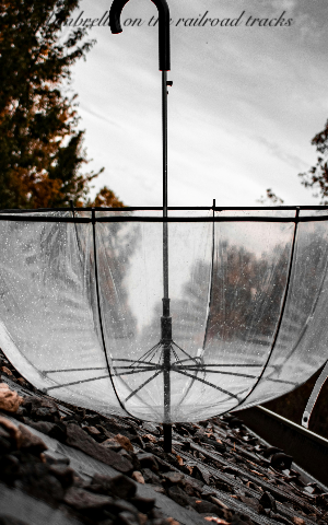 Umbrella on the railroad tracks
