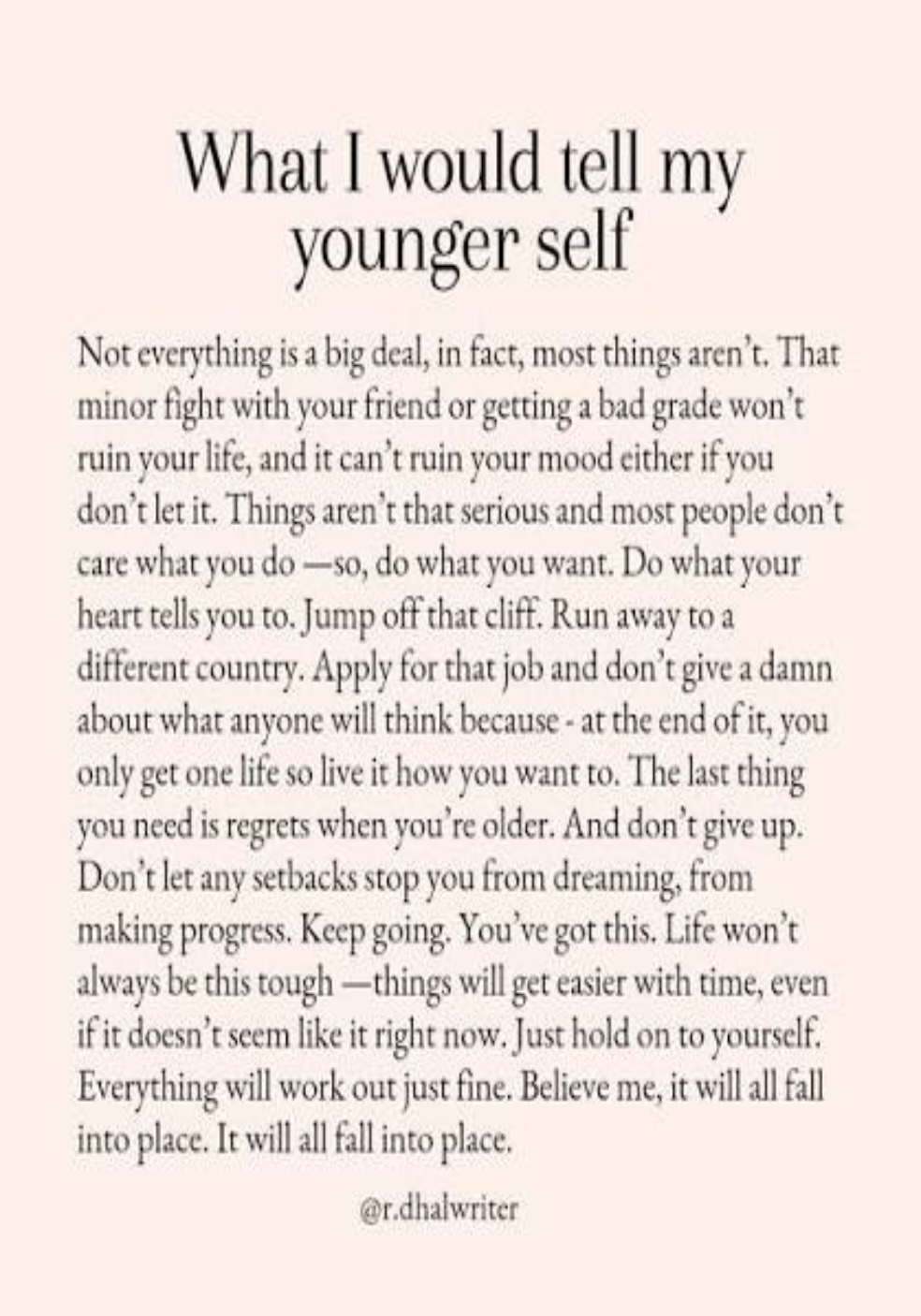 So what would I say to my 15 year old self? My younger self who was suffering so?