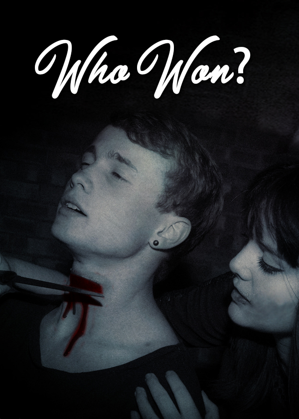 He came forward a little more. Their legs were touching now. The steel of the knife was barely visible. His t-shirt was vet with warm, red blood. Her breath was falling on his face as she looked straight into his eyes, the shine was fading.