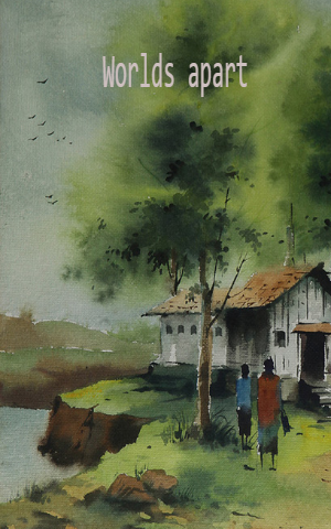 She gazed at the village against the backdrop of the sky at dawn, slumbering quietly. To her, the place felt like a painting from her attic which had suddenly livened. She thought about the nights on the terrace of his rented one room apartment, when he had made rough sketches of those narrow lanes in the dusty floor as she watched in awe.