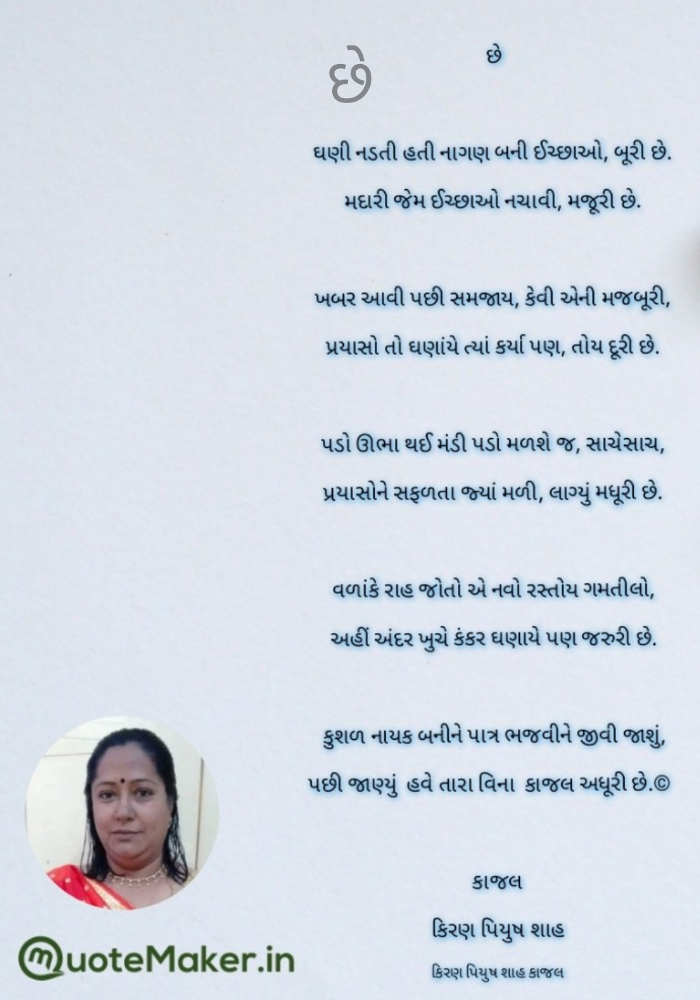 પછી જાણ્યું હવે તારા વિના કાજલ અધૂરી છે.